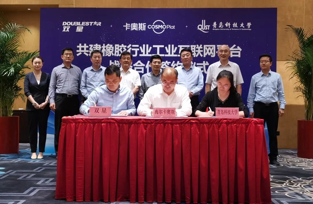 6月8日下午,青岛科技大学与双星集团、海尔卡奥斯在海尔洲际酒店举行共建橡胶工业互联网平台战略合作签约仪式。校长陈克正、海尔集团总裁周云杰、双星集团董事长柴永森,市国资委主任、党委书…