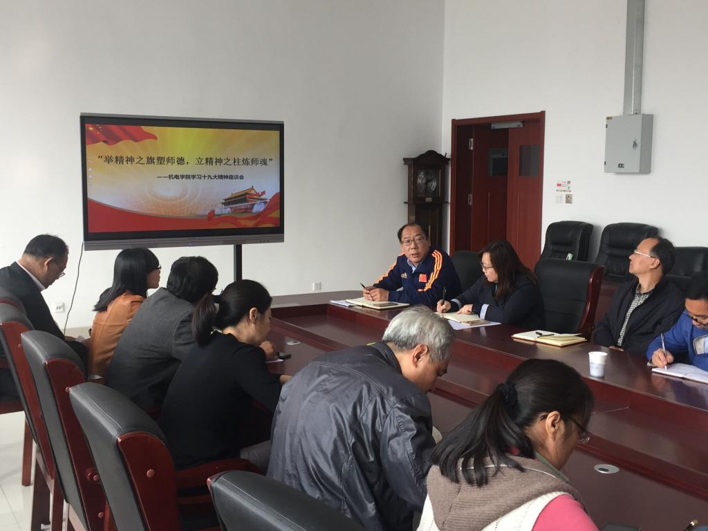 10月20日下午,机电色漫天堂 在518会议室召开题为“举精神之旗塑师德 立精神之柱炼师魂”学习十九大精神座谈会,机电色漫天堂 院长何燕、各系主任和党支部书记等出席座谈会,会议由机电色漫天堂 党总支书记孙…