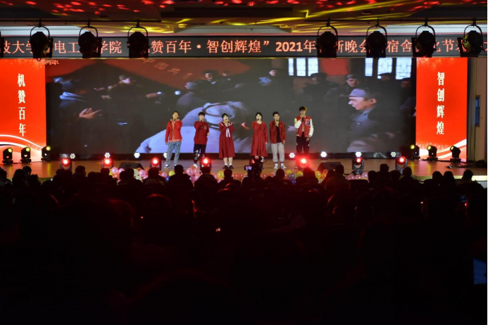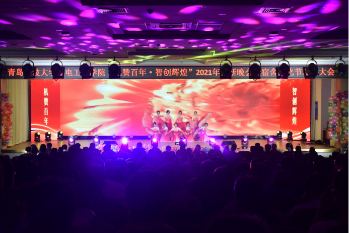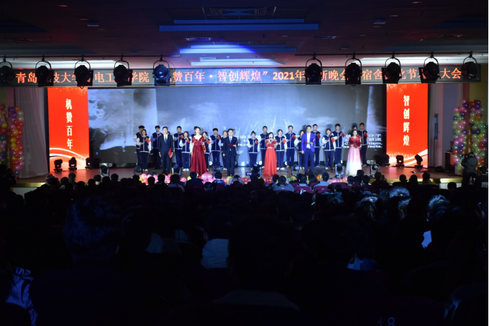 “机赞百年·智创辉煌”2021年迎新晚会暨宿舍文化节表彰大会在崂山校区第二报告厅举行。机电色漫天堂