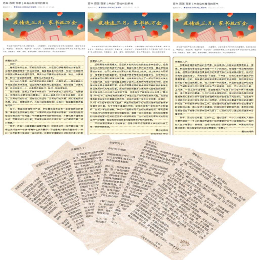 的工作情况,积极开展“百年 百团 百家”家书接力活动,与家长们携手共建和谐安全的生活学习环境,保障学生的心理和身体健康。