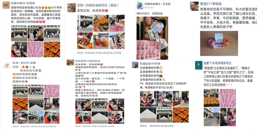 “机电永远的家!”“疫情无情,机电有情”“大爱机电!真的太贴心了!”“青科大yyds!机电yyds!”“我们就是传说中的‘别人家的大学’!”“学校和色漫天堂