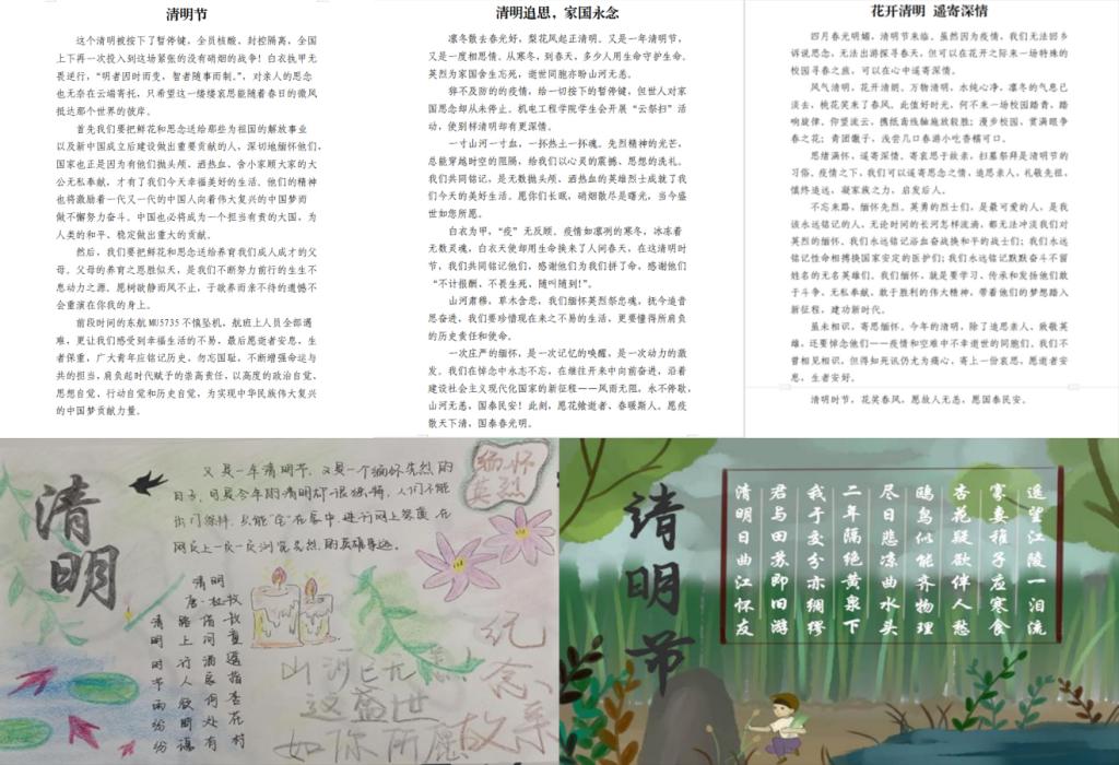 开展“家国清明,春满人间”手抄报征集活动,将收集到的事迹用手抄报、海报的形式表达出来,以先辈先烈为镜,不断筑牢信仰之基、补足精神之钙、把稳思想之舵。