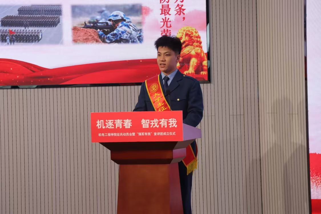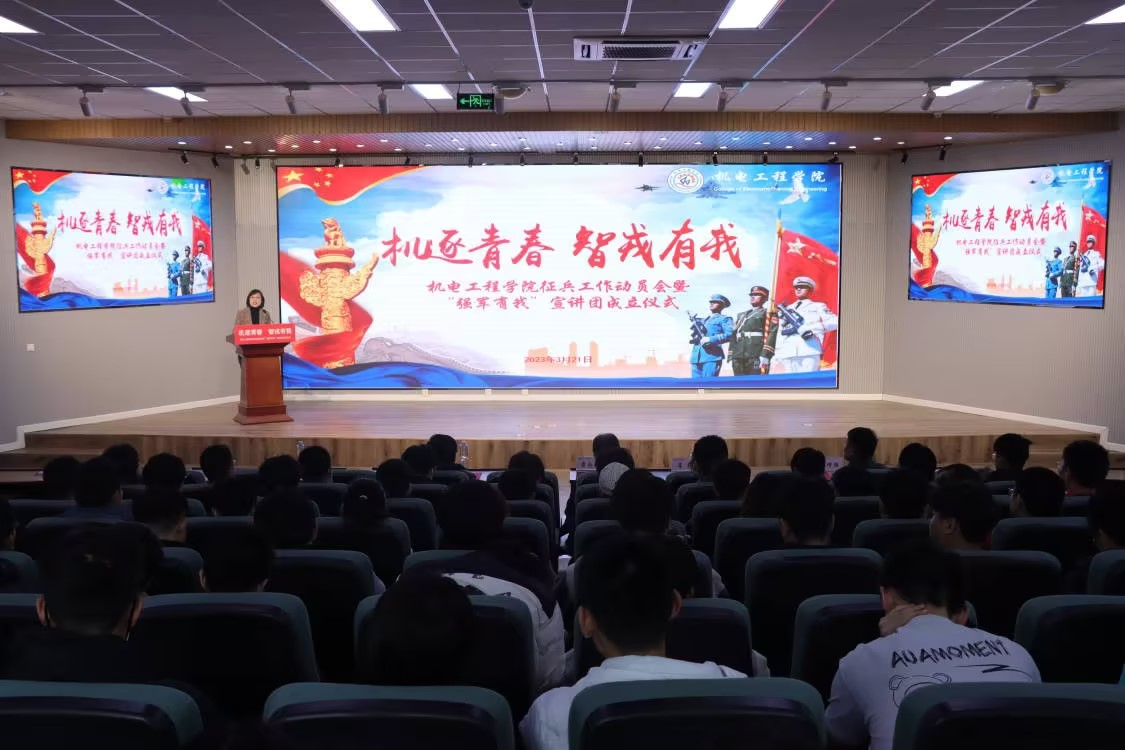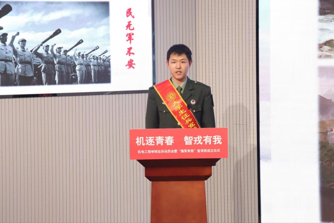 开展“机逐青春 智戎有我”征兵动员会暨“强军有我”宣讲团成立仪式。学生处副处长、武装部副部长曹永俊,学校武装部国防教育科科长、征兵工作站站长黄玉斌,学校武装部闻增银,色漫天堂