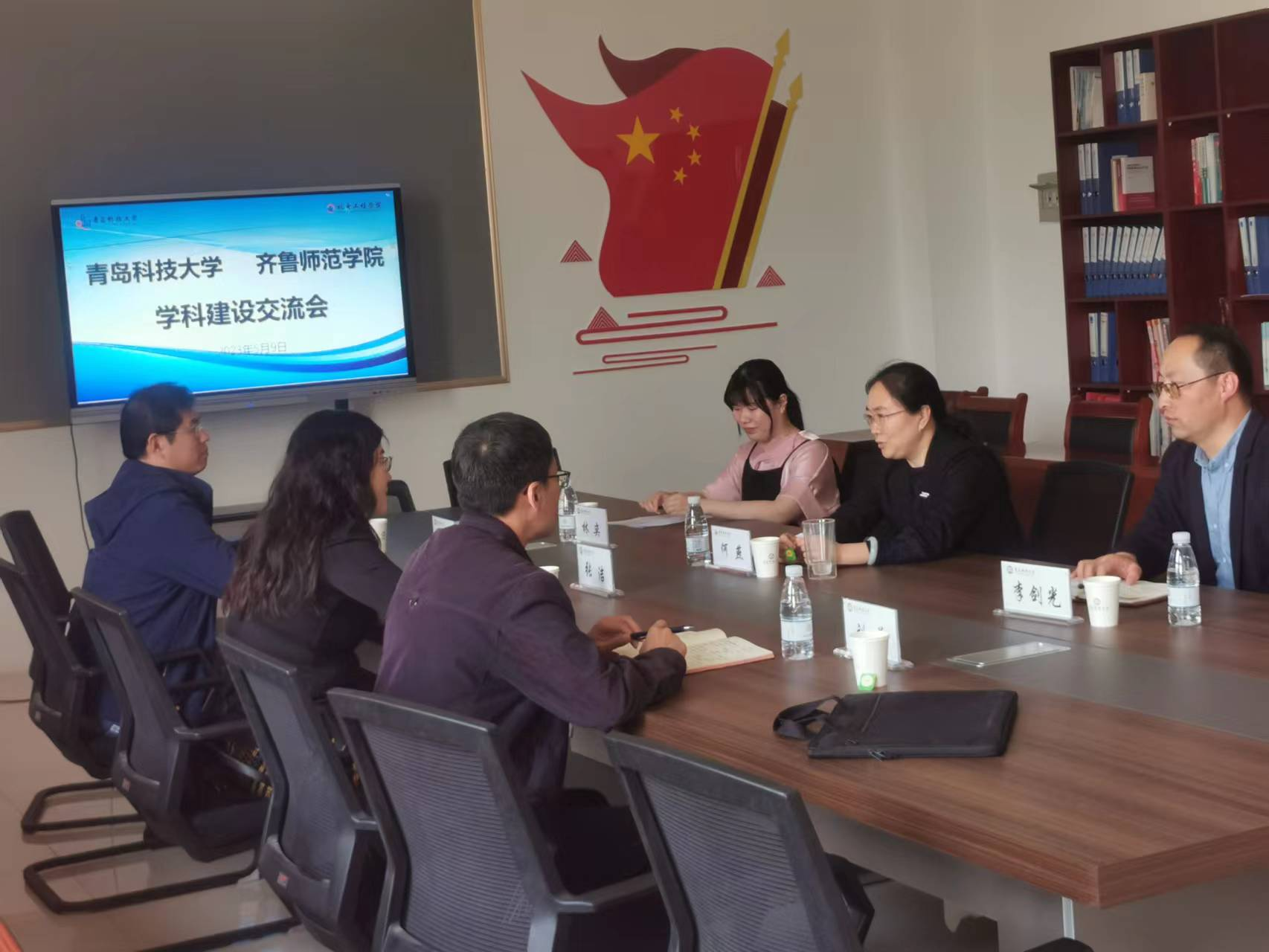 5月9日,齐鲁师范色漫天堂 物理与电子工程色漫天堂 院长张洁、副院长刘萌、教研室主任高刃奇一行来我院进行学科专业建设交流,院长何燕、副院长李剑光、合作办学办公室负责人林奕参加。