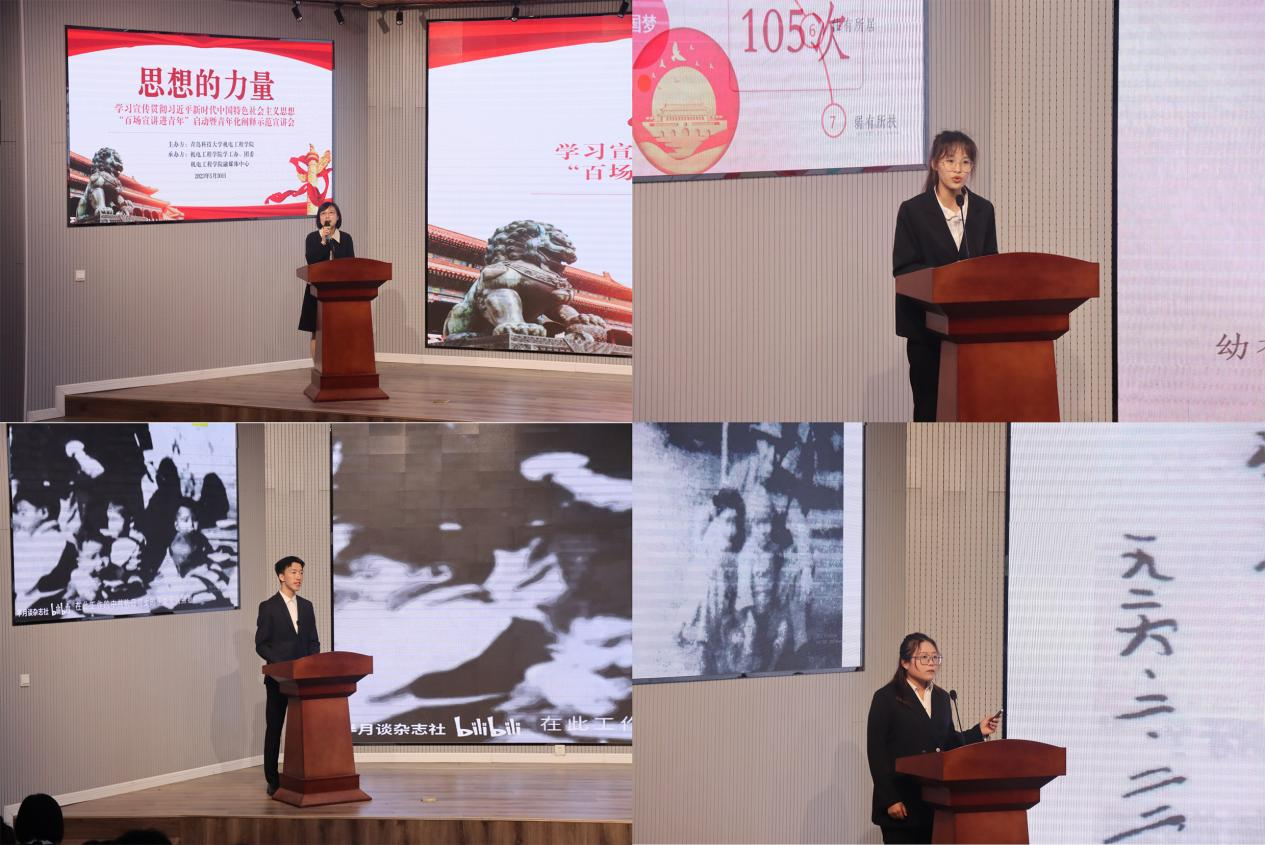 、班级、社区等,运用师生和百姓喜闻乐见的形式,为学习宣传贯彻习近平新时代中国特色社会主义思想贡献青科大机电力量。