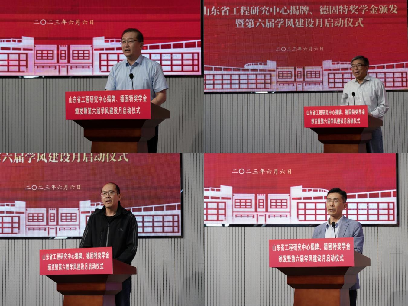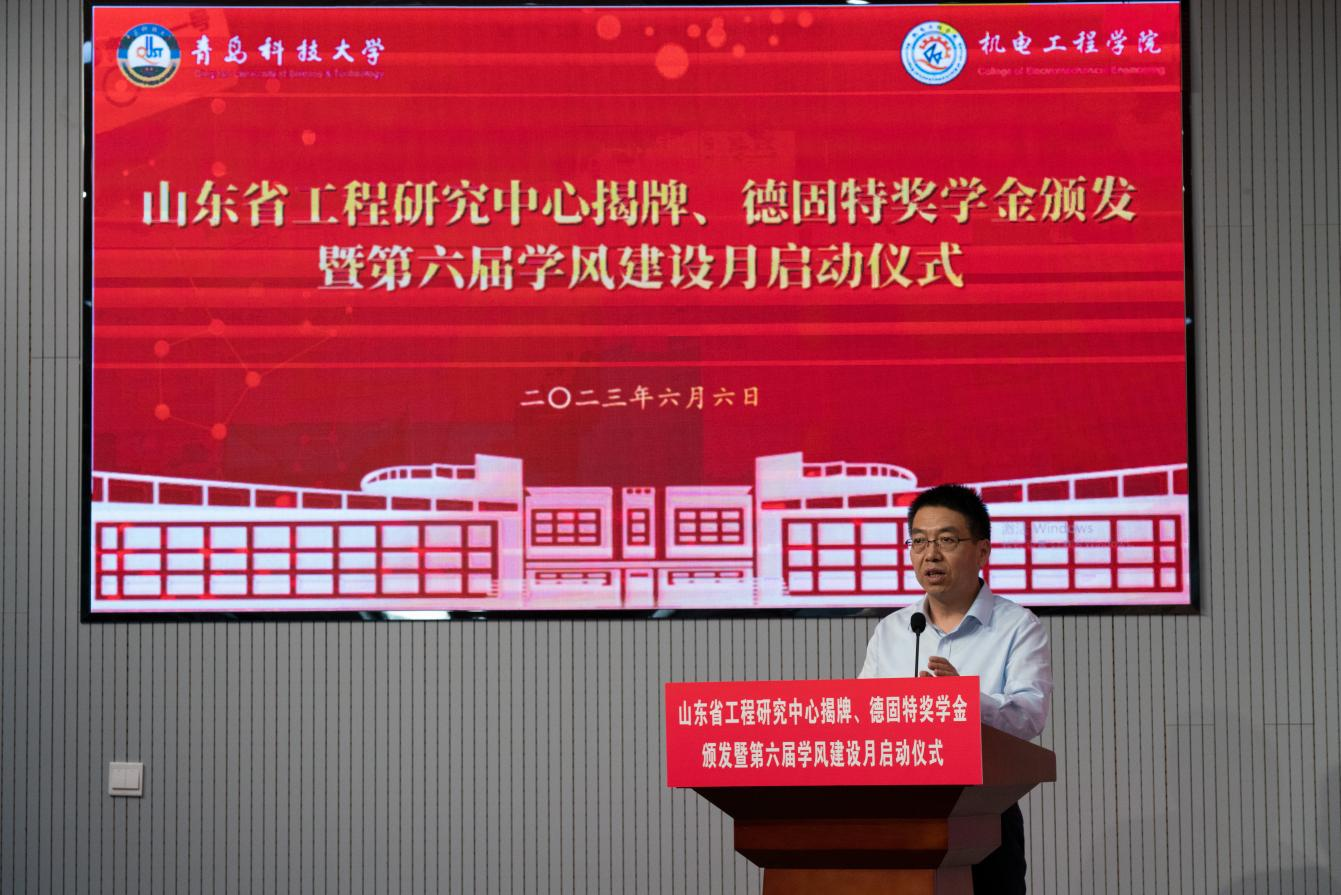 揭牌、德固特奖学金颁发暨第六届学风建设月启动仪式。学校党委常委、副校长吕万翔出席仪式并讲话,学生处、校团委、教务处相关负责人,青岛德固特节能装备股份有限公司董事长魏振文,副总经理崔建波,色漫天堂