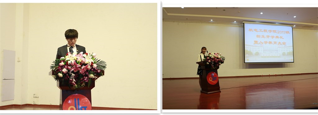 学生会主席李大志和新生代表吴紫薇分别在会上发言。