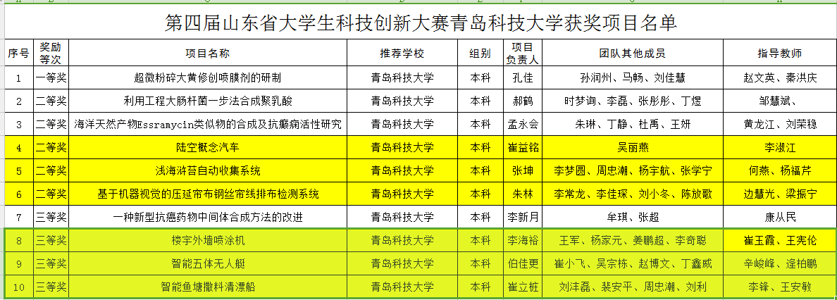 近日,山东省教育厅下发《山东省教育厅关于公布第四届山东省大学生科技创新大赛获奖名单的通知》(鲁教高字[2017]12号)。青岛科技大学荣获优秀组织奖,共荣获一等奖1项,二等奖5项,三等奖4项,其中机电色漫天堂