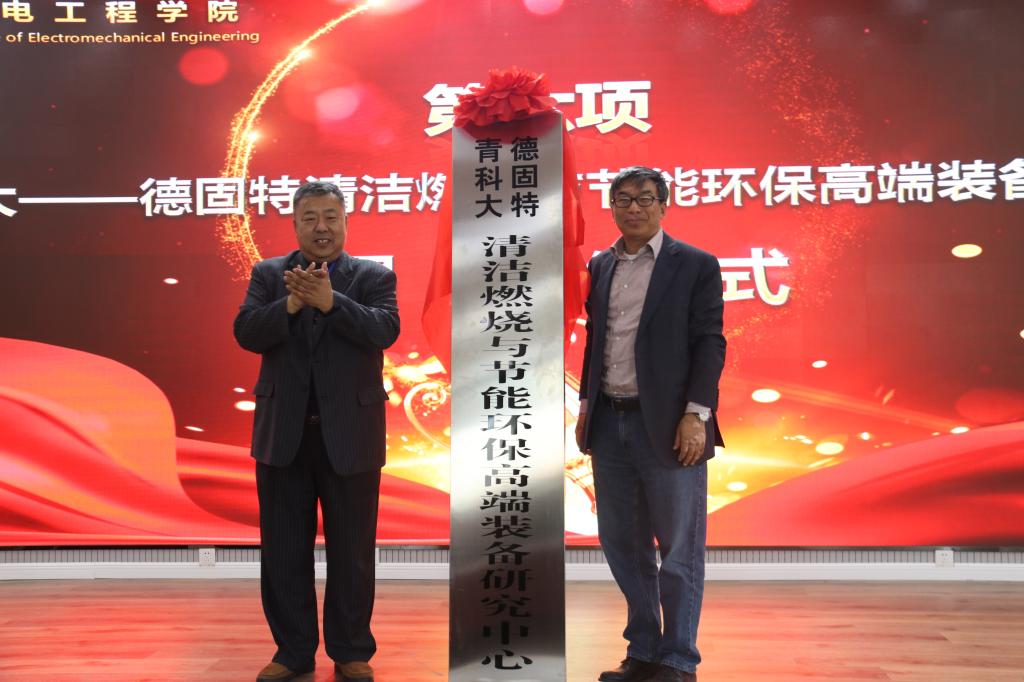 在机电大楼530会议室隆重举行德固特奖学金颁奖典礼暨青科大----德固特清洁燃烧与节能环保高端装备研究中心揭牌仪式。