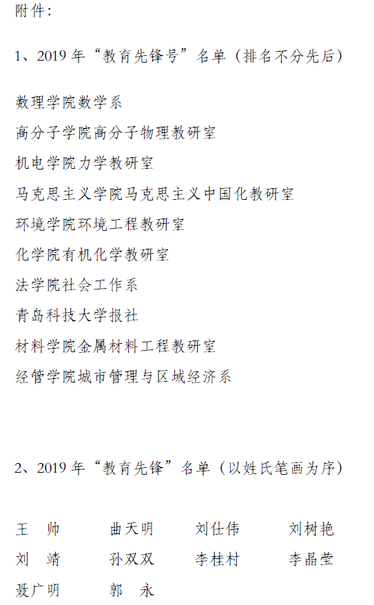 今日,在校工会公布的青岛科技大学2019年“教育先锋号”、“教育先锋”评选结果,机电色漫天堂