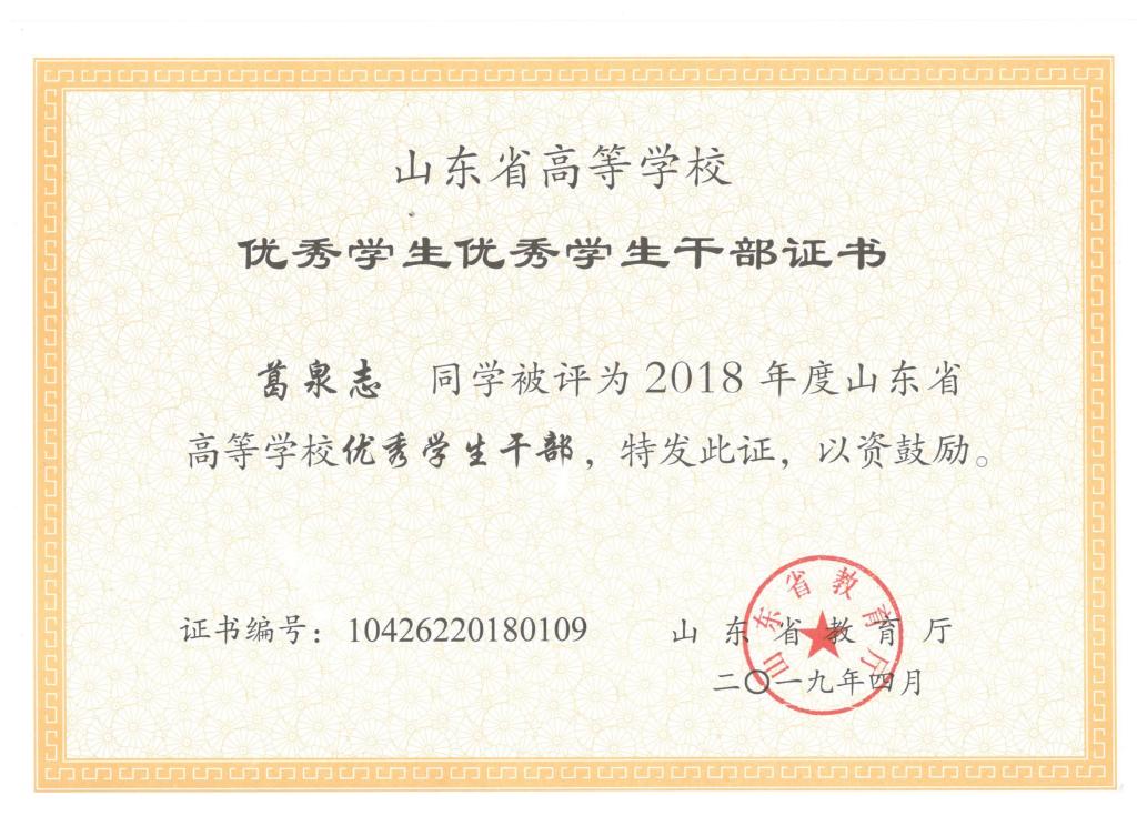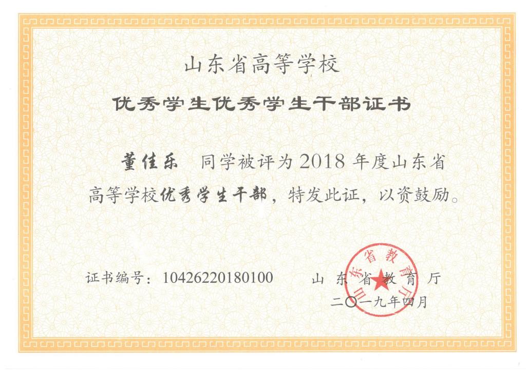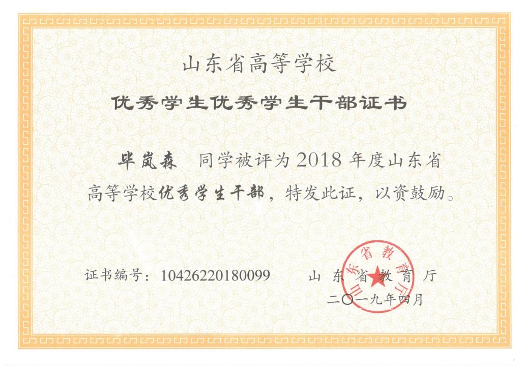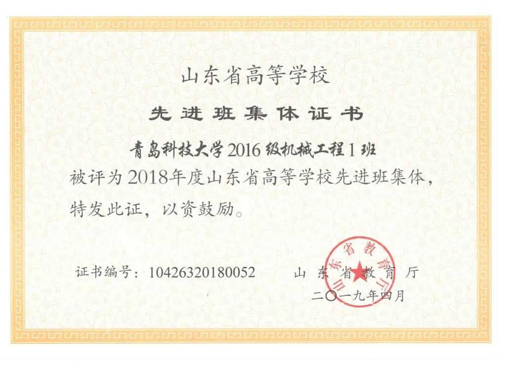 近日,山东省教育厅发布了《关于公布2018年度高等学校优秀学生优秀学生干部和先进班集体评选结果的通知》。机电色漫天堂 7名学生和1个班集体获2018年度省级优秀学生、优秀学生干部和先进班集体荣誉称号。