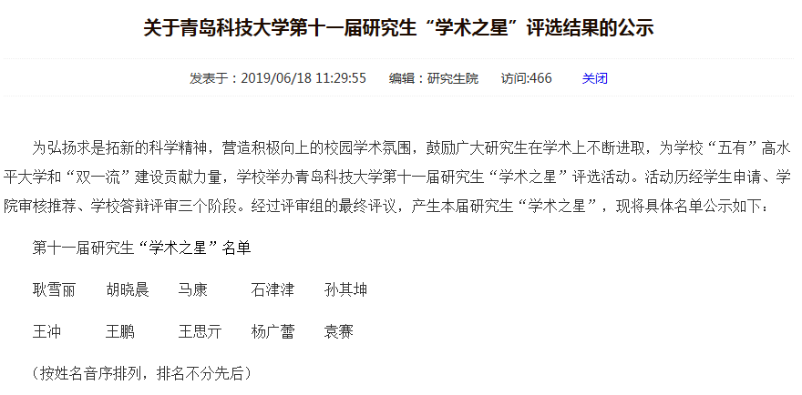 据悉此次活动是为弘扬求是拓新的科学精神,营造积极向上的校园学术氛围,鼓励广大研究生在学术上不断进取,为学校“五有”高水平大学和“双一流”建设贡献力量而举办的,共评选出十位学术之星。