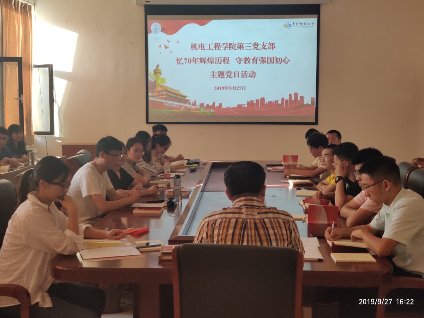 518会议室举行“忆70年辉煌历程 守教育强国初心”主题党日活动。第三党支部全体党员参加了活动,活动由党支部书记王作辉主持。