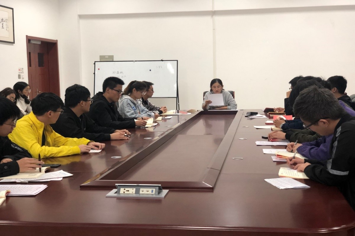 首先,王伟带领全体党员学习了习近平总书记的重要文章《推进党的建设新的伟大工程要一以贯之》。同时,对政治建设、全面从严治党、担当作为、政治纪律和政治规矩、理想信念、宗旨性质、党性修养、廉洁自律八个专题逐次开展研讨学习。王伟重点强调,作为学生党员,必须守初心、担使命,把担当作为一种责任、一种使命,始终保持责任重于泰山的意识,对学习和工作尽心竭力、善做善成、敢于担当应是共产党人一以贯之的政治品格。