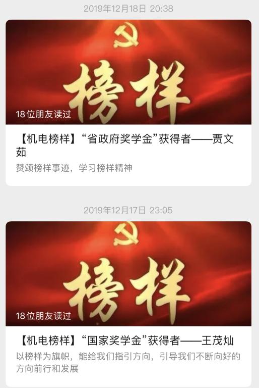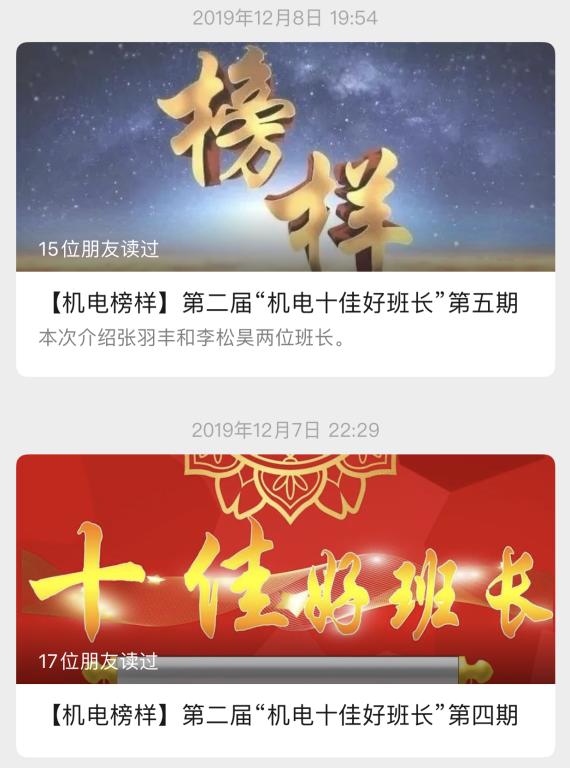 设立“榜Young”系列,宣传了“中国好人”王跃熙、“大智之星”王敏、优秀机电学子刘冰桀等,让机电学子汲取榜样“内在的力量”,向榜样看齐。制作“机电好班长”、“十佳团支书”等专题,让机电学生班干等像榜样看齐,争做合格学生干部。推出“百团百优”栏目,推出150余个班团剪影,增强班级凝聚力。
