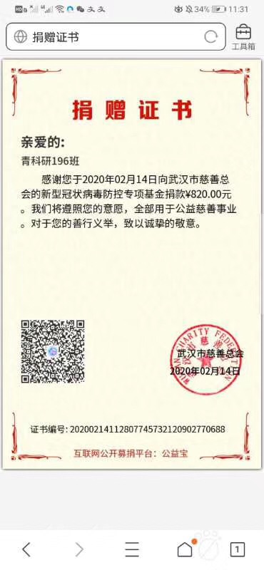 “战‘疫’路上,有你有我,一路同行。”青春战‘疫’的样子还有很多,装控162班崔苏宁同学看到疫情肆虐却急缺口罩、防护服等医用物资时,他心急如焚,用自己的压岁钱向武汉儿童医院捐助4套防护服。省建档立卡户王聪也捐出100元善款,他说:“一方有难八方支援,受到社会帮助的他也应该学会帮助他人”。研究生6个班级共同用自己的压岁钱、积攒的零花钱向武汉慈善总会捐款,为支援“战疫”前线尽一份微薄之力。在防控疫情的关键时刻,机电学子活跃在各个基层,机械中韩164班初梦珠、机械(3+4)161班李世杰、装控183班马江儒、机智181王瑞恒、新能源181马元宇、机械中韩182邵兆坤、机械173班朱洪阳看到家乡防控人手不够,纷纷主动报名参加防控志愿活动,积极投身这场没有硝烟的战场中,用实际行动体现一代青年的责任与担当。
