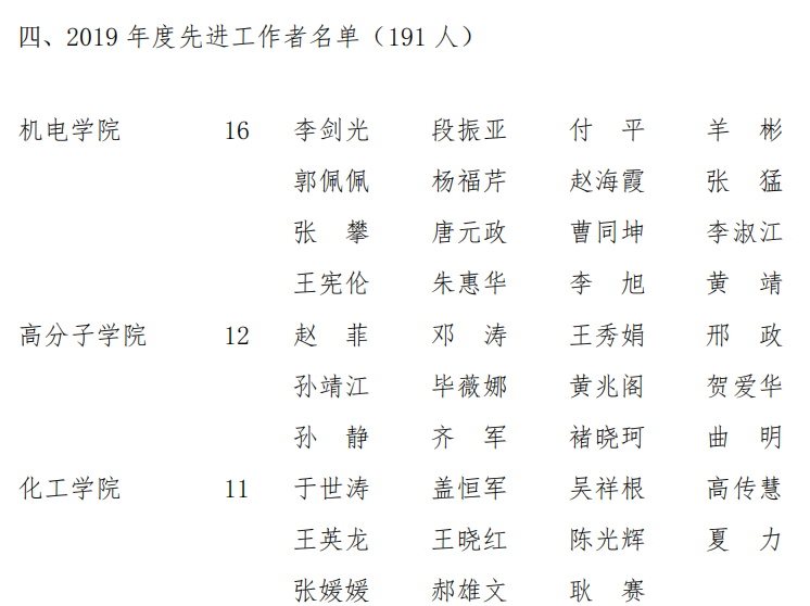 近日,青岛科技大学2019年度先进集体和先进工作者表彰名单公示,机电色漫天堂