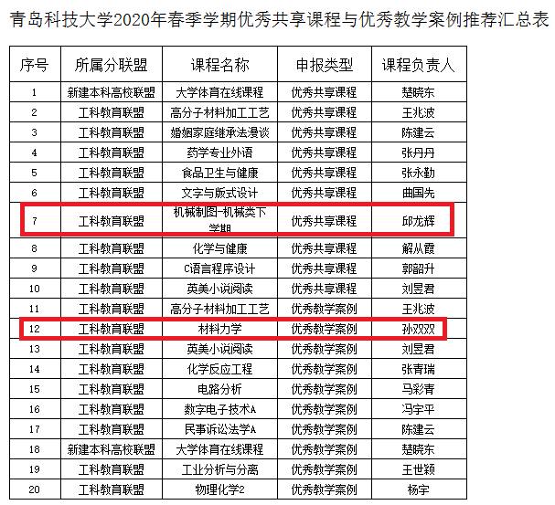 据悉,此次评选是根据省教育厅《关于开展2020年春季学期优秀共享课程与优秀教学案例评选活动的通知》文件要求,学校开展了2020年春季学期优秀共享课程与优秀教学案例评选活动。经教师个人审报、色漫天堂 推荐、专家评审,最终评选出青岛科技大学2020年春季学期优秀共享课程10门、优秀教学案例10个。