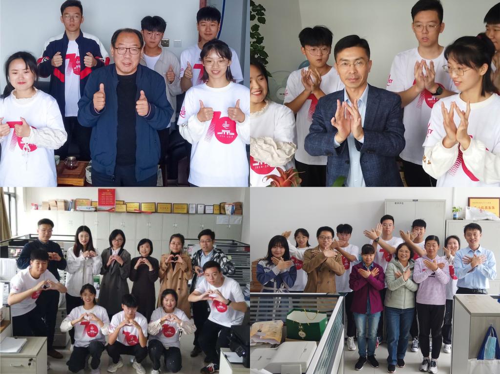 集思广益、开拓创新,首次通过手语操的形式,走进教研室、走进辅导员办公室、走进学校心理中心、走进教室、走进师生活动现场等现场传递学生对教师的感恩和祝福,见证到老师们繁忙琐碎的工作,感受到教师默默无闻、无私奉献的奋斗精神,机电学子怀着感恩之心为老师们表演手语操《听我说谢谢你》,无声的表达胜似千言万语,一句“老师,您辛苦了!”道出机电学子感恩心常在,在音乐与心灵的交融中受到震撼,为辛苦付出的领导老师献上诚挚的祝福,老师们的掌声更是对同学们的关心和关爱。