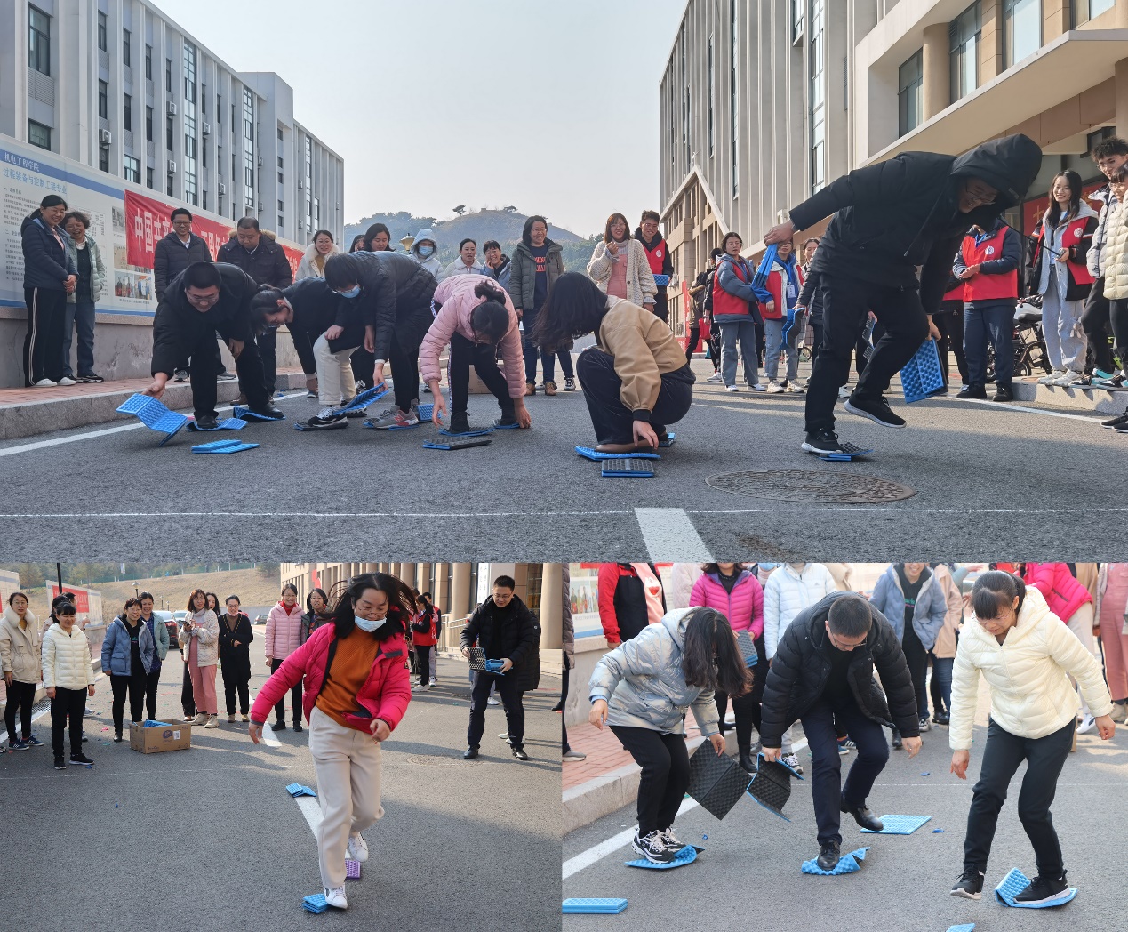 “摸石头过河”中,教师们争先恐后,充分展现了身体协调能力。