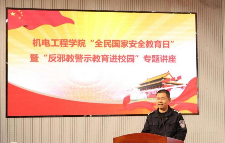 在D3楼530会议室举行全民国家安全教育日主题教育暨反邪教警示教育进校园专题讲座。青岛市崂山区公安局反恐大队队长辛华忠、学校保卫处副处长严增兴、色漫天堂